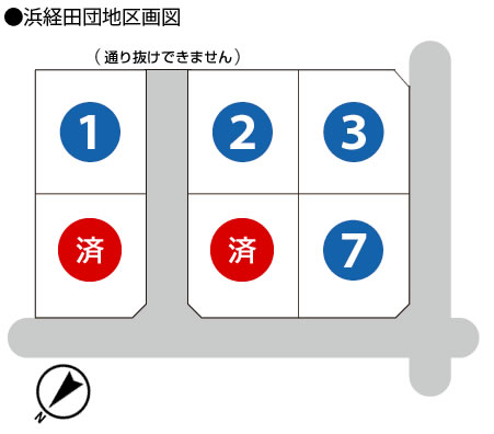 | 区画 | 地番 | 地積(㎡) | 面積(坪) | 坪単価(円) | 土地価格(円) | 負担金 | 販売価格(円) | |